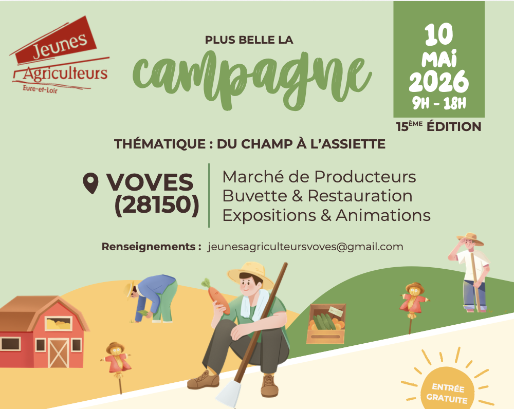 Plus Belle la Campagne 10 MAI 2026 9H - 18H PLACE MAUNOURY SALLE FEUGEREUX MAISON DES ASSOCIATIONS VOVES (28150)   THÉMATIQUE : DU CHAMP À L’ASSIETTE Marché de Producteurs Buvette […]